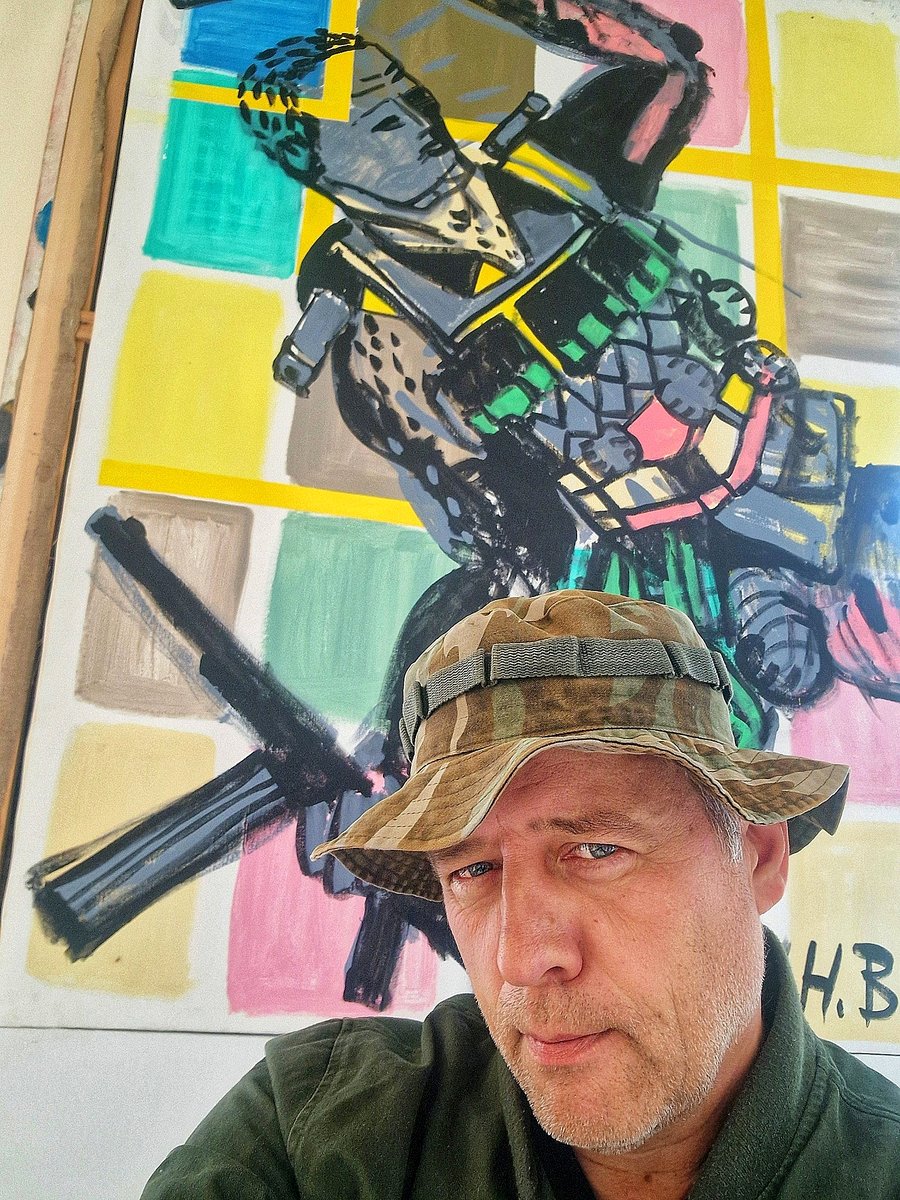 In einer einsamen Nacht in meinem Atelier in der Cornelis Drebbelstraat malte ich diese Figur in wenigen Minuten — den Ukrainischen Fallschirmjäger, ca. 200×150 cm auf Leinwand.